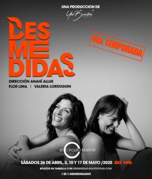 Durante el mes de mayo, se presenta la obra teatral “DESMEDIDAS” en su cuarta temporada, con la actuación de la talentosa uruguaya Valeria Lorduguin, la función será en “El Circulo Teatral” en la Ciudad de México.